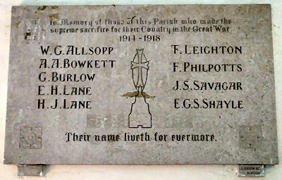 In memory of those men of this parish who made the supreme sacrifice for their country in the Great War 1914-1918